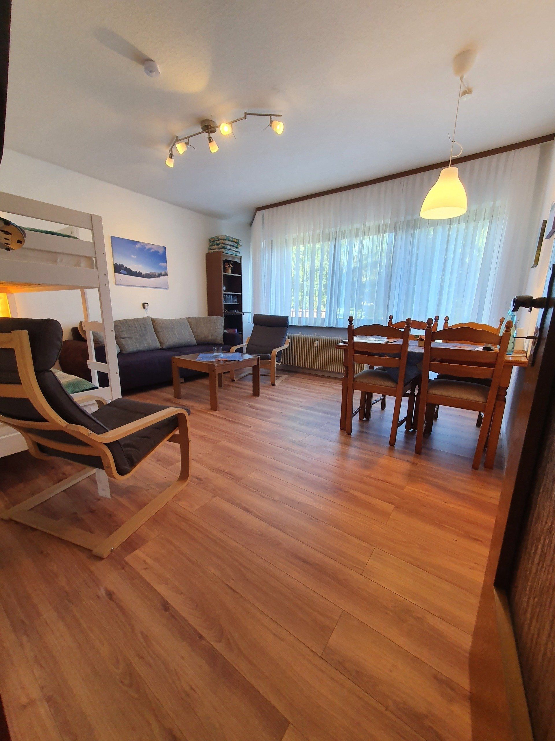 Unsere helle und gemütliche Ferienwohnung mit Wohn- und Schlafzimmer und großer Terrasse
